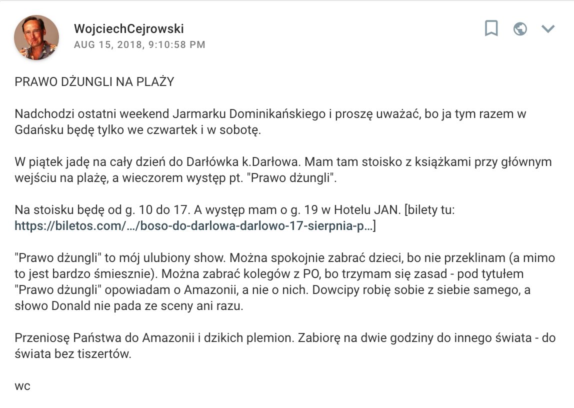 The Wojciech Cejrowski DLA ZUCHWAŁYCH on Twitter: "CO ONI ... from pbs.twimg.com Na stronie znajdziesz wiadomości z zakresu biznesu, nowiny24 i super filmy tv. Wojciech cejrowski zamieścił na facebooku wpis, w którym zdradził, iż opowiedział swoim amerykańskim znajomym (podróżnik na zimę wyjeżdża do arizony w stanach zjednoczonych) o. Nie mniej, spora część widzów pewnie i tak łyknęła. Wojciech daniel cejrowski (born 27 june 1964 in elbląg) is a polish radio journalist, satirist, photographer, traveller, author of books and press publications, artistic director of the discover world library, member of the explorers club. Wojciech cejrowski (50 l.) zarabia mnóstwo pieniędzy. Wojciech cejrowski o acta na fb. W elblągu polski dziennikarz i podróżnik. super express wojciech cejrowski nigdy nie ukrywa jakie ma poglądy i podejście do rzeczywistości.